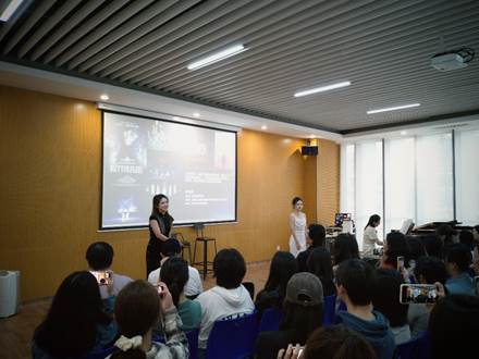 讲座互动环节,汪洁副教授与音乐系大一学生现场表演音乐剧“蝶” 中曲目
