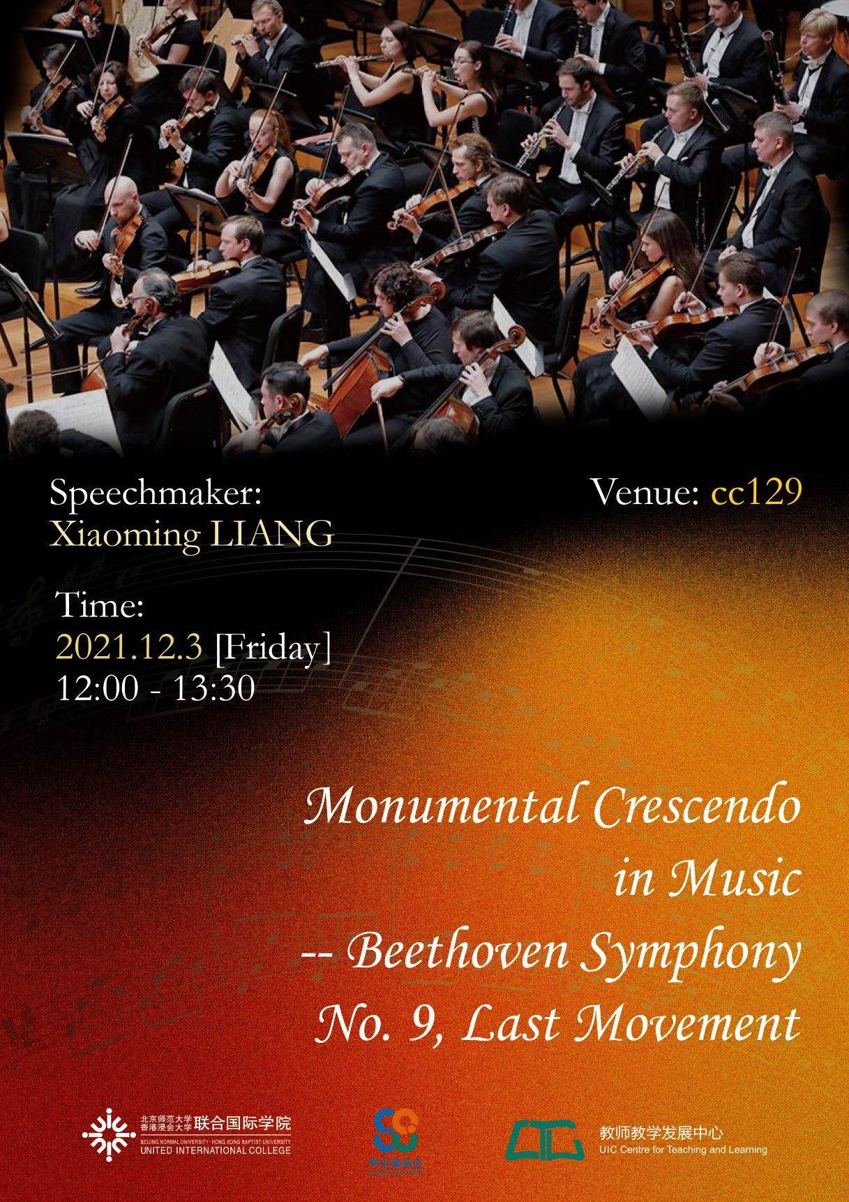Bio of the Speaker: Liang Xiaoming was enlightened by his father Liang Guanliu since he was a child, and then under the guidance of the famous pianist Professor Zhou Guangren, and under the tutelage of Professor Huang Anjue in Hong Kong. He successively obtained a bachelor's degree in piano performance and music theory, and won the Outstanding Graduate Award. Later, he was awarded a master's degree in piano performance and a master's degree in music theory. Finally, he successfully obtained a doctorate in music art and won an academic merit award. As early as 1989, Dr. Liang taught in the piano department and music theory department of the University of Kansas. After graduating and returning to Macao in 1995, he taught at the Macao Academy of Performing Arts under the Cultural Affairs Bureau of the Macao Special Administrative Region Government. In 1998, Dr. Liang was appointed as the principal of the Music School of the Macao Academy of Performing Arts. Since 2002, he has officially served as the dean of the Macao Academy of Performing Arts. Since 2010, Dr. Liang has concurrently served as the Executive General Manager of the Macau Orchestra. Since 2012, Dr. Liang has officially served as the Deputy Director and Director of the Cultural Affairs Bureau of the Macao Special Administrative Region Government, responsible for various affairs related to performing arts activities.