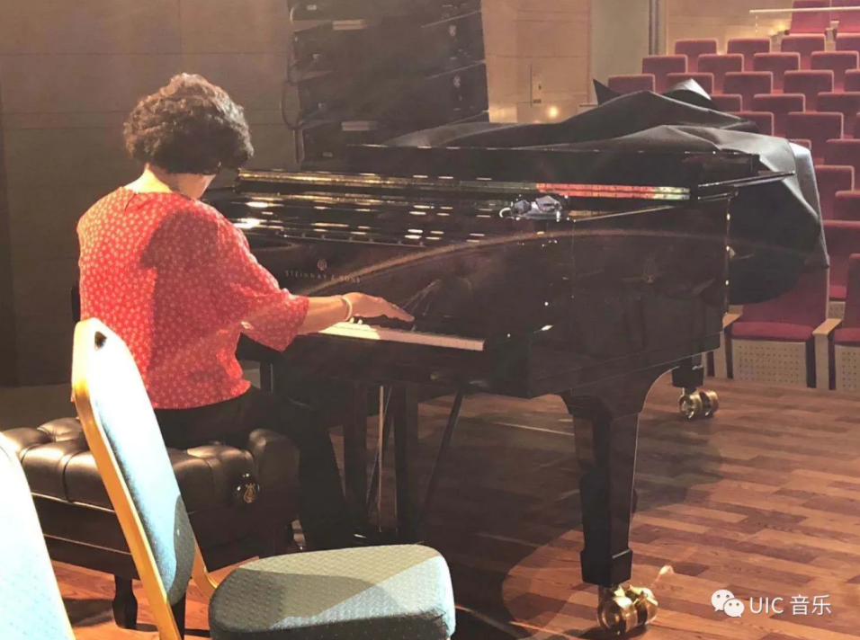 随后鲍教授又返回大学会堂测试了晚上演出要使用的钢琴。即使是一个小小的测试,她的手一落在钢琴上,就立马进入了演奏的状态。鲍教授行云流水般的演奏让一旁的工作人员都不由自主的停下手中的工作,侧耳聆听,沉醉其中。