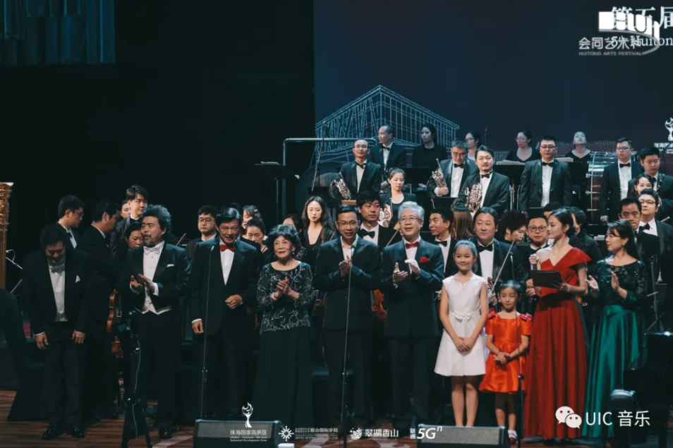 演出结束,学生志愿者们上台为演奏者们献花。会同艺术节在大型交响诗音乐会“梦里海湾”的完美谢幕中落下帷幕。