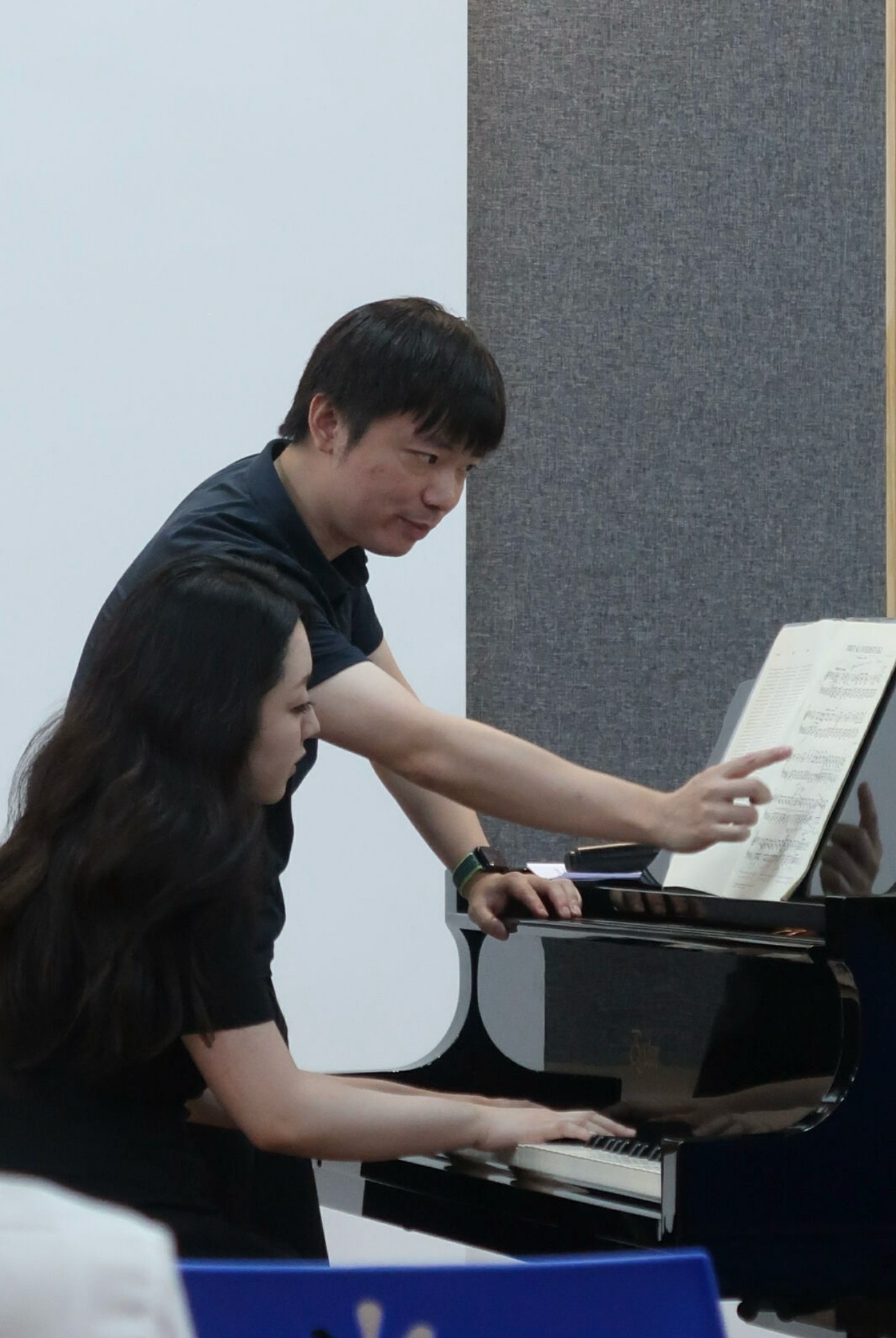 作为武汉音乐学院的钢琴副教授,周子东教授在钢琴教育领域拥有丰富的经验。他持有美国密歇根州立大学音乐艺术博士学位,并在国际赛事中屡获殊荣。此次大师班中,周教授将其丰富的演奏与教学经验倾囊相授,为学生们带来了关于钢琴技巧、作品诠释与舞台表现的宝贵课程。他充满活力的教学风格激励着学员们勇敢探索音乐潜能的更多可能性。