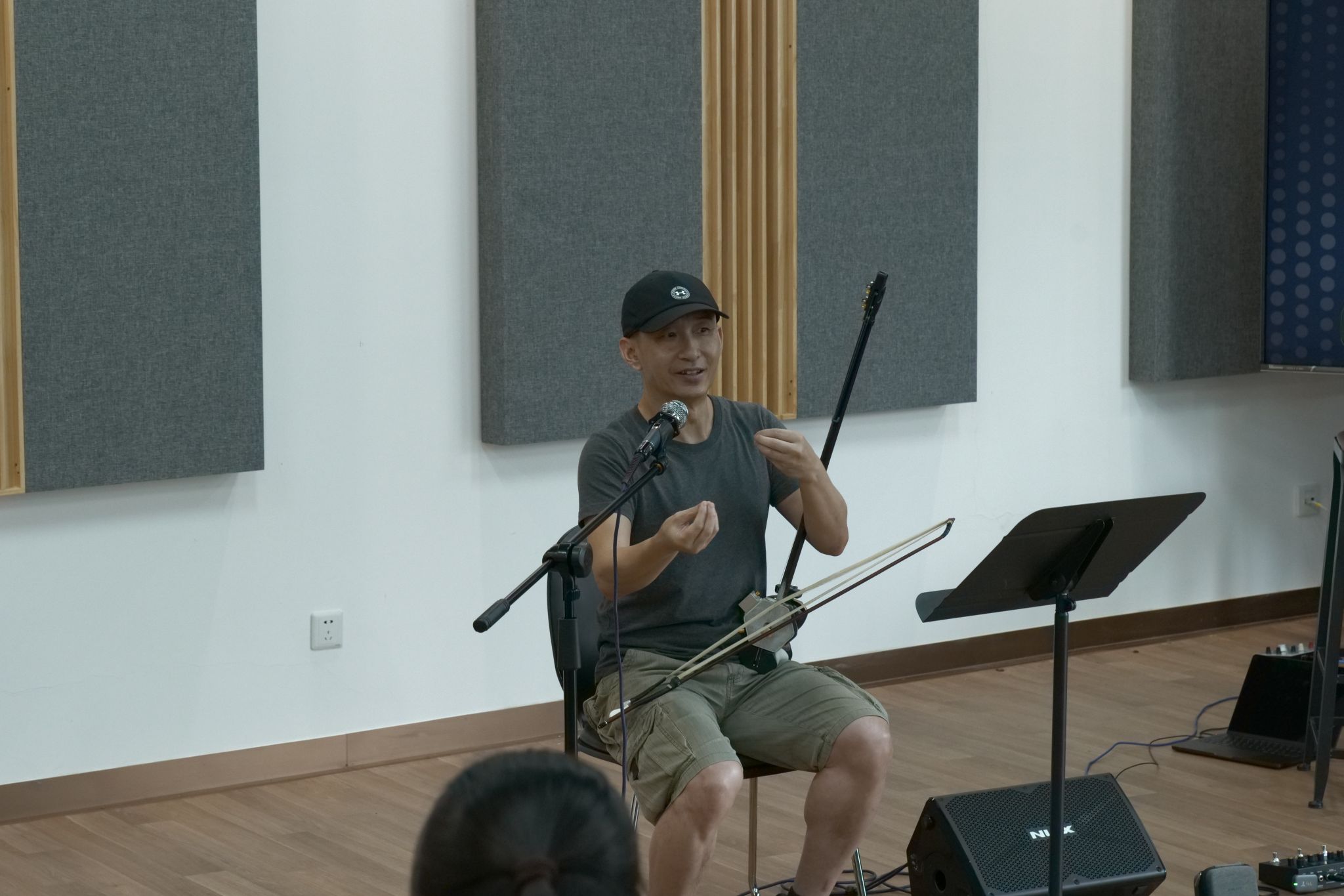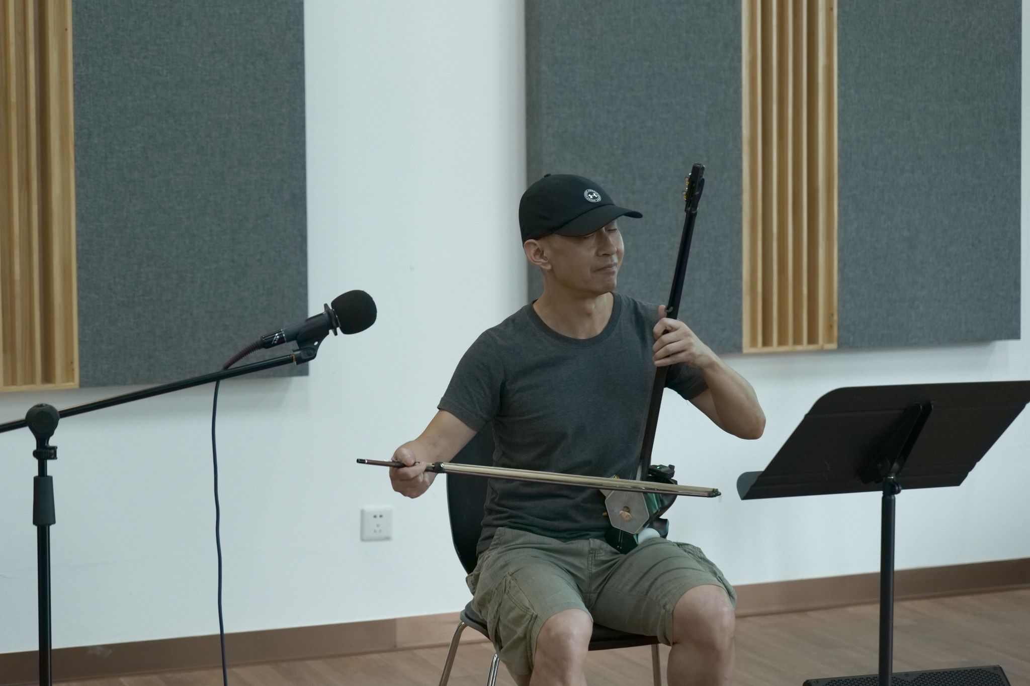 在现场示范环节,高教授以精湛技艺展示二胡的广阔表现力。他演奏了带有西北秦腔风格 音乐元素、细腻悠远的江南丝竹片段, 以及经典曲目《二泉映月》,并呈现了二胡改编的柴 可夫斯基《D 大调小提琴协奏曲》第三乐章选段,充分展现二胡在传统与跨界领域的独特魅 力。
