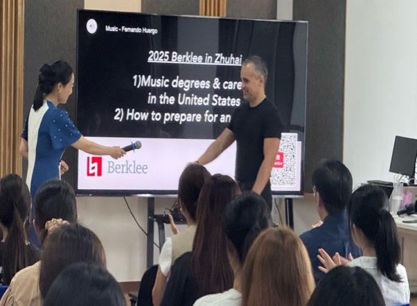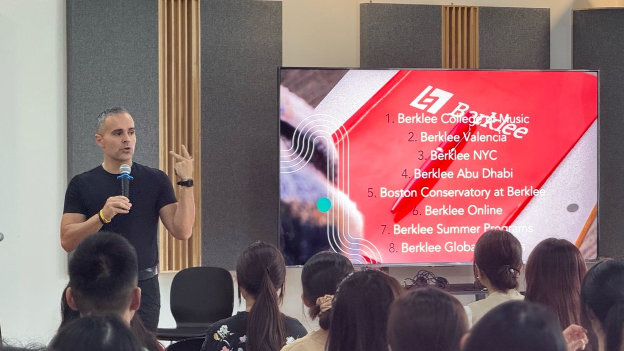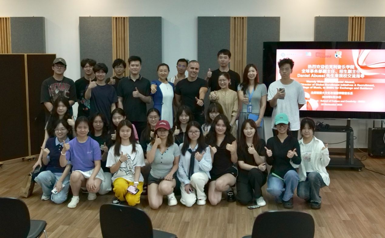 2025年9月25日中午,北师港浸大(BNBU)文化与创意学院音乐系在CC129举办了“面试技巧”专题讲座。主讲嘉宾是世界顶尖流行音乐学府-美国伯克利音乐学院全球事务部&招生部副主任 Mr. Daniel Abussi先生,他以 “How to Audition – 掌握面试成功的艺术与技巧” 为主题,与师生分享了丰富的经验与见解。