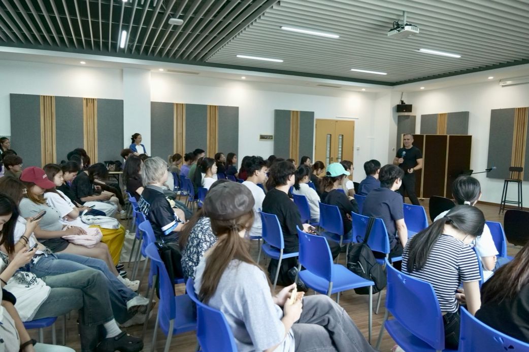 讲座吸引了音乐系及其他院系的众多师生到场聆听,现场气氛热烈。Daniel 先生结合自己多年国际招生与舞台经历,深入解析了如何挑选合适曲目、应对紧张情绪,以及在舞台上展现独特风采等实用要点,为同学们带来切实可行的建议。