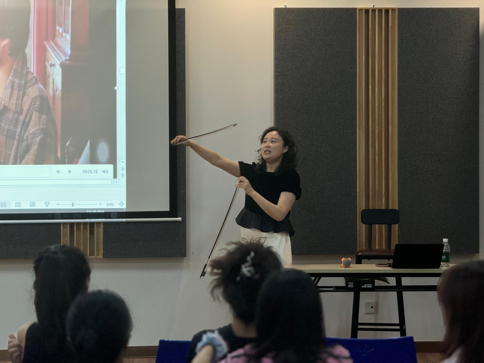 The event featured violinist and educator Lingyi Kong, whose impressive career and unique interpretative skills provided a fresh, inspiring perspective on the iconic works of Bach. The first half of the session was an engaging lecture where Kong shared her deep insights into Bach’s violin partitas, unraveling the intricate layers of the music and offering students a rare opportunity to understand the nuances of interpretation from a master violinist.