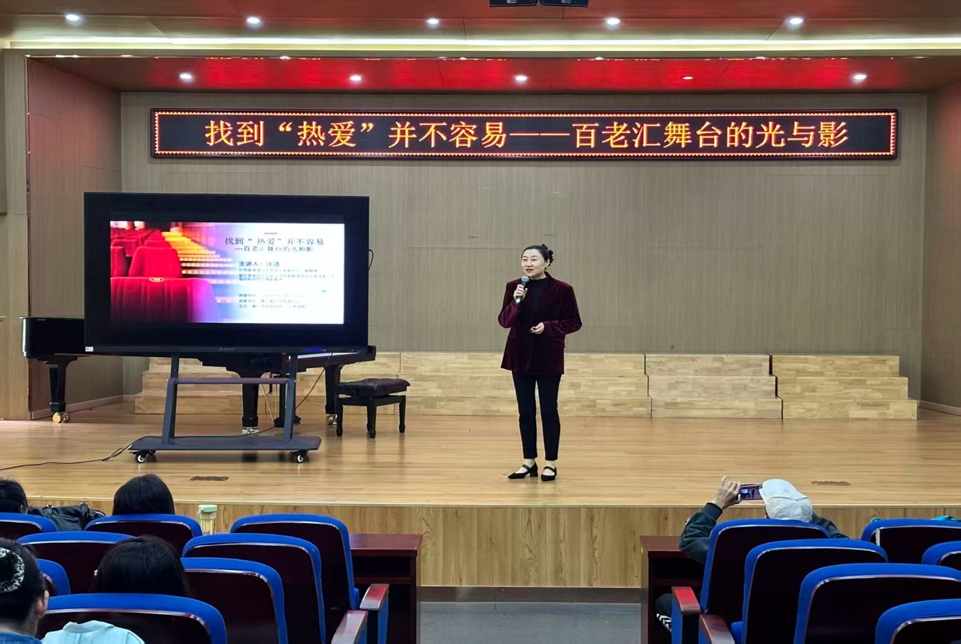 During the visit, Associate Professor Wang delivered a lecture entitled “Finding Passion Is Not Easy — The Light and Shadow of the Broadway Stage.” Through appreciation and analysis of musical theatre as a stage art form, she encouraged students to develop a genuine passion for the arts, to persevere in their pursuits, and to never give up. The lecture was rich in content and vividly presented. In particular, the interactive session brought the atmosphere to a climax.