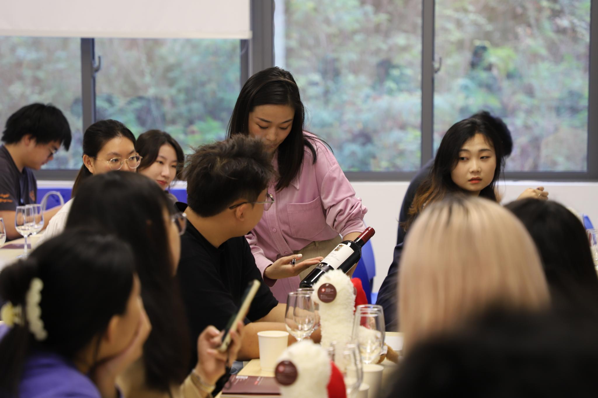 2023年12月13日下午,在CC-326开展了由文化与创意学院文化创意与设计系、职业发展中心与SEG合作举办的校园沙龙——红酒品鉴活动。本次活动邀请到SHMS校友和WEST&CMS认证侍酒大师Teresa为学生带来新世界及旧世界红酒品鉴大师课。