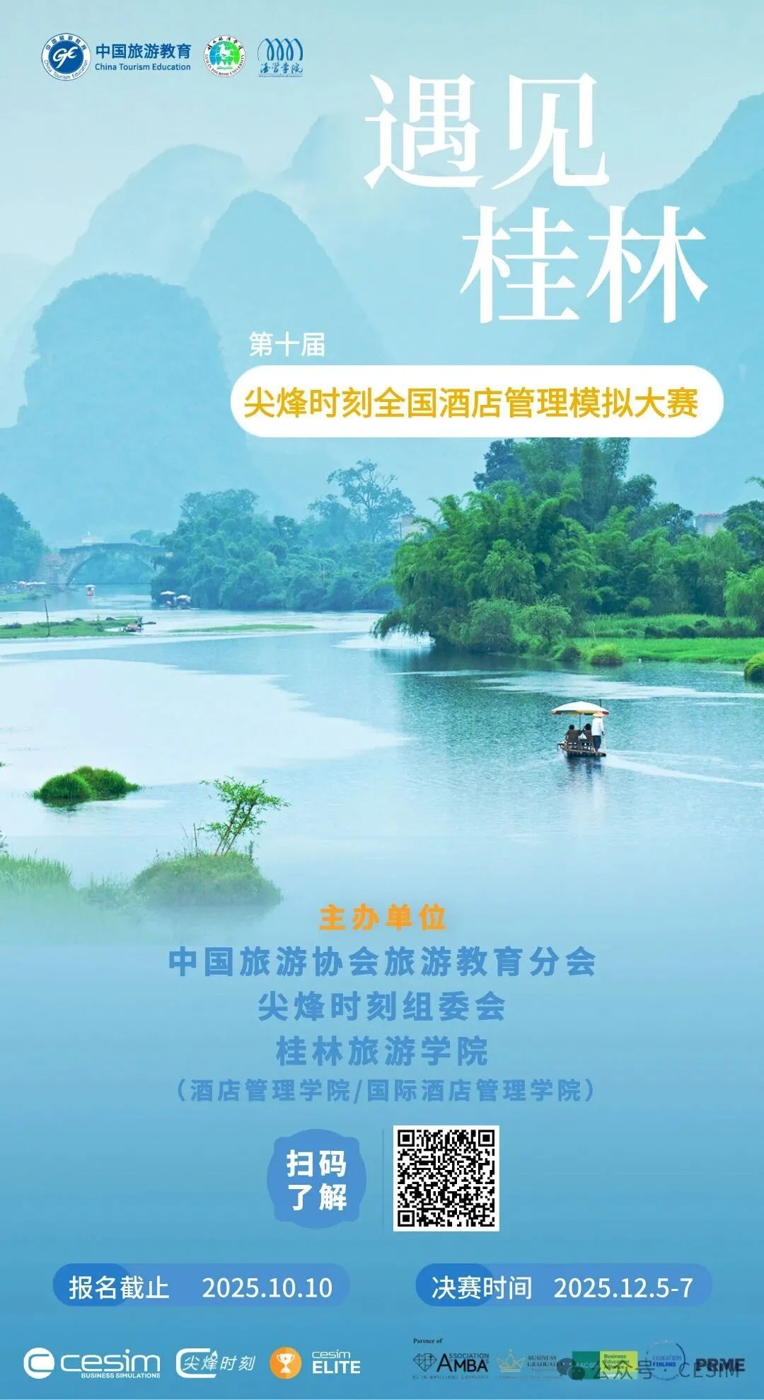 The 10th “Cesim Elite” National Hospitality Simulation Competition is jointly organized by the China Tourism Education Association, the Cesim Organizing Committee, and the School of Hospitality Management / International School of Hotel Management of Guilin Tourism University. The competition aims to promote educational reform in tourism and hospitality management and explore innovative models and pathways for talent cultivation in the new era.