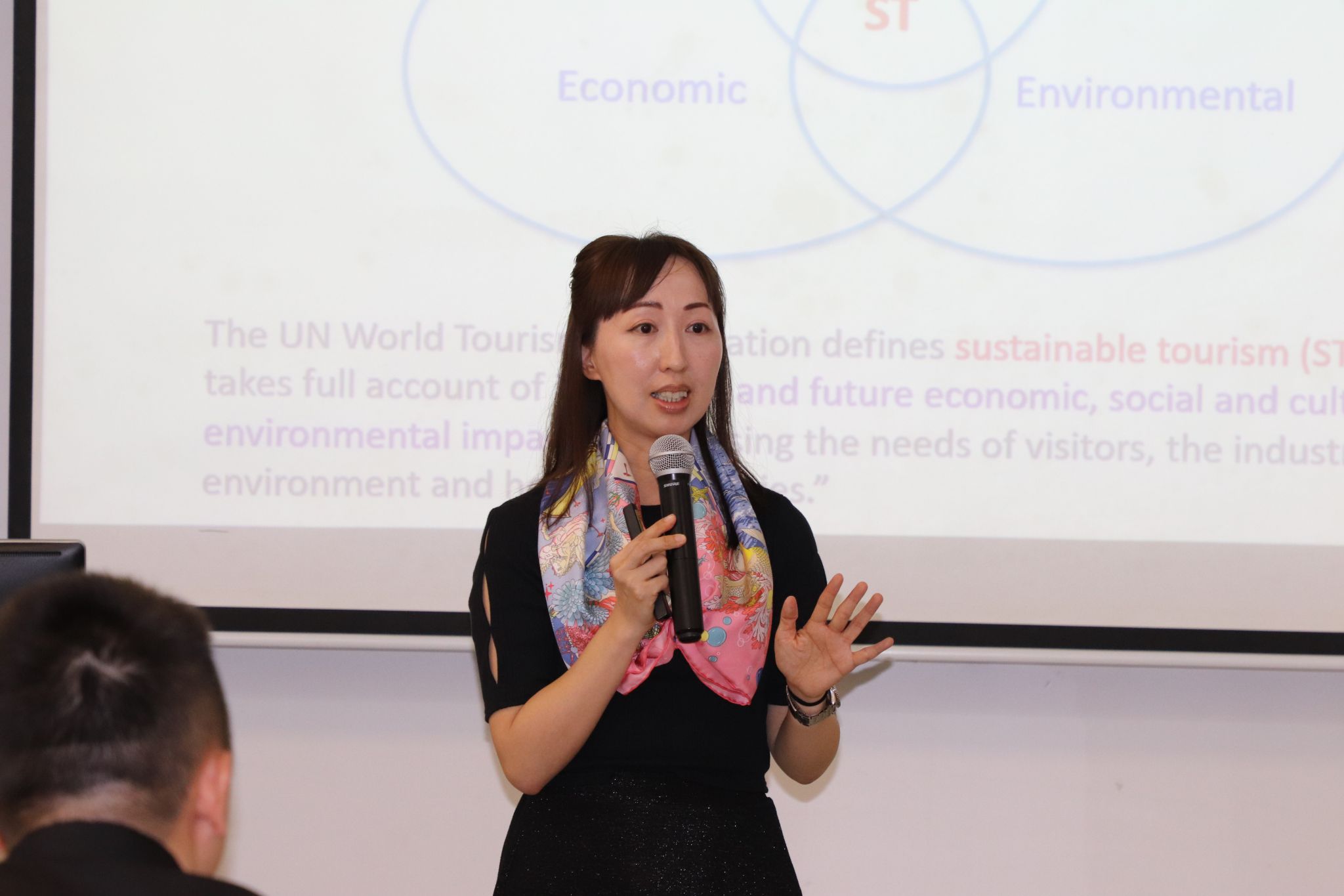 On the afternoon of April 11, 2025, Associate Professor Lisa C. Wan, Co-Director of the School of Hotel and Tourism Management at the Business School of The Chinese University of Hong Kong (CUHK), was invited by the Tourism, Hospitality and Event Management Programme of the School of Culture and Creativity. She delivered a special seminar titled " Sustainable Tourism: Promoting Green Practices Among Tourists and Hospitality Businesses " in Classroom CC302.